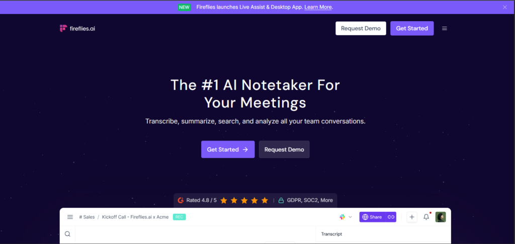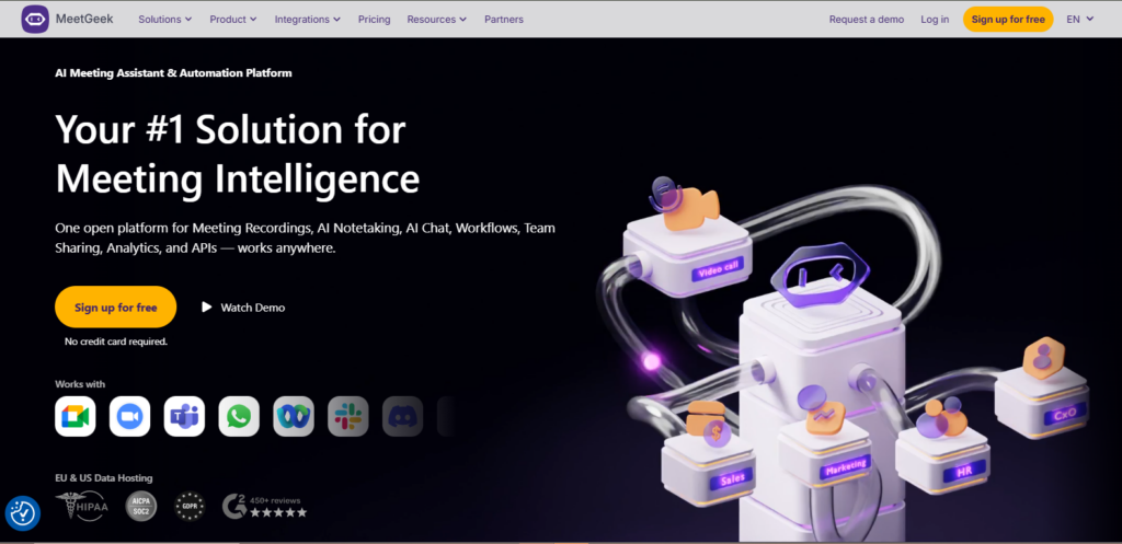 When teams require automatic recording, structured summaries, and easily searchable meeting archives, MeetGeek is a good option. It can capture meetings, transcribe the conversations, and create summaries, even if you don’t manually tag every single call or join them.