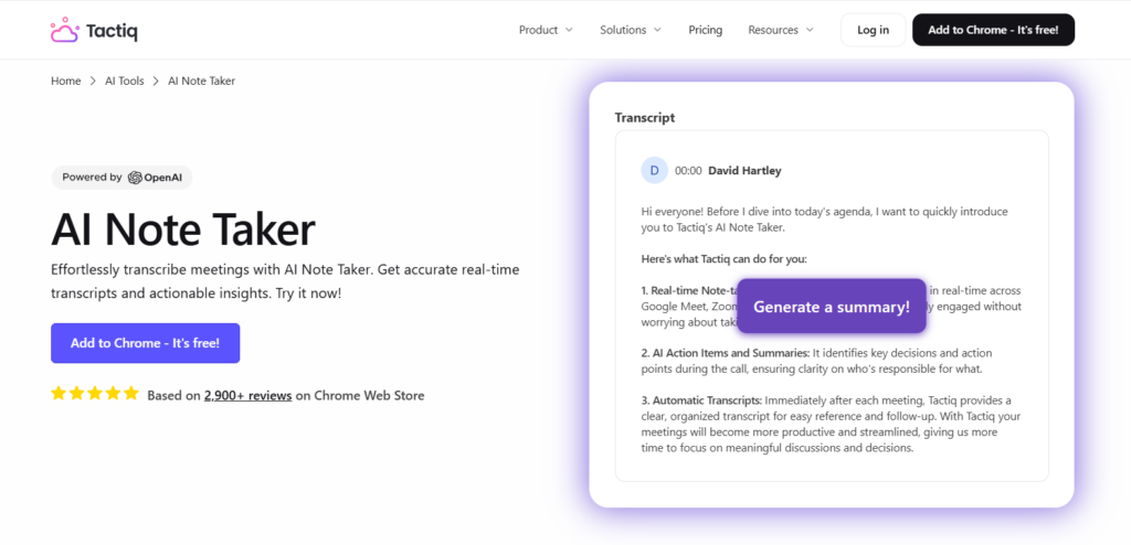 - Tactiq: For simple, affordable meeting notes inside existing tools